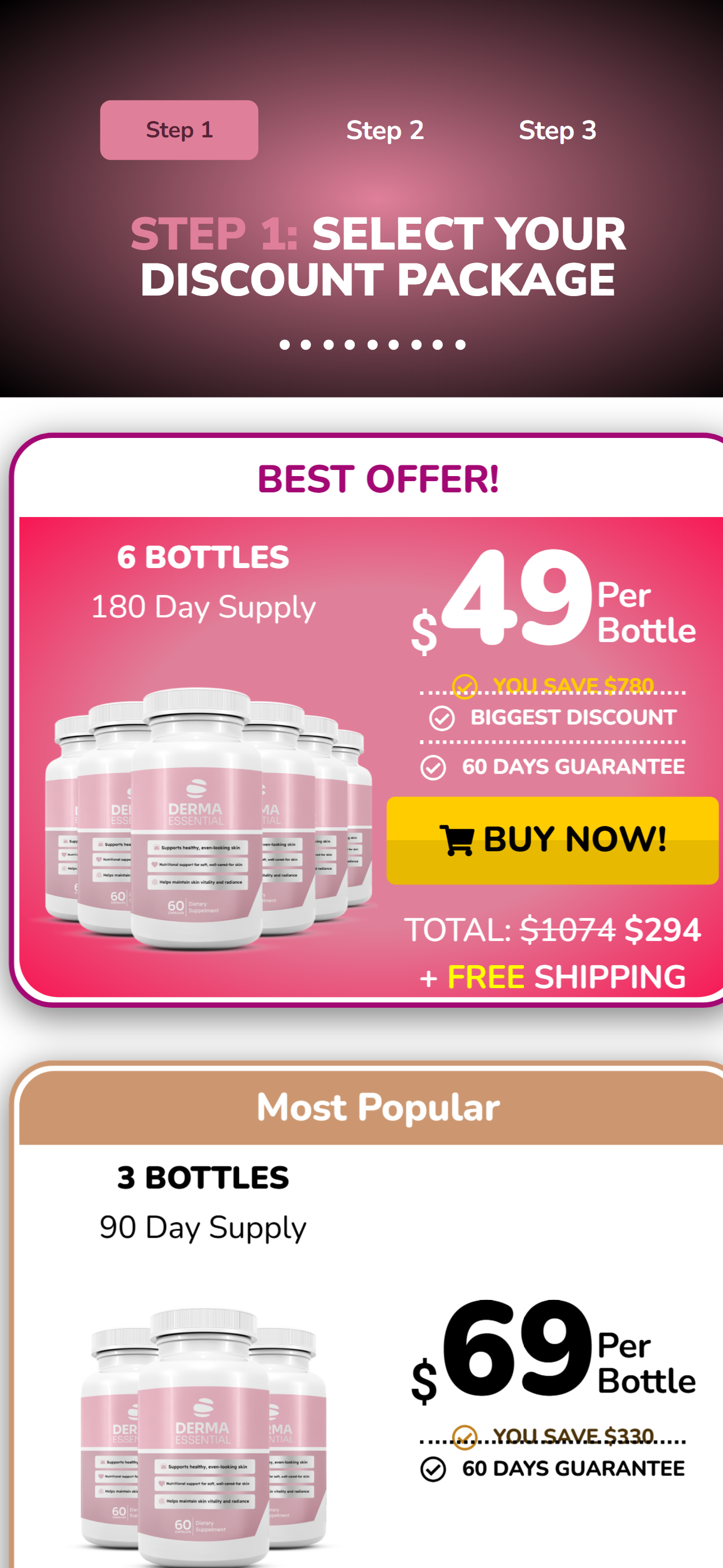 The 6-bottle package offers the lowest cost per bottle and is the most popular option.